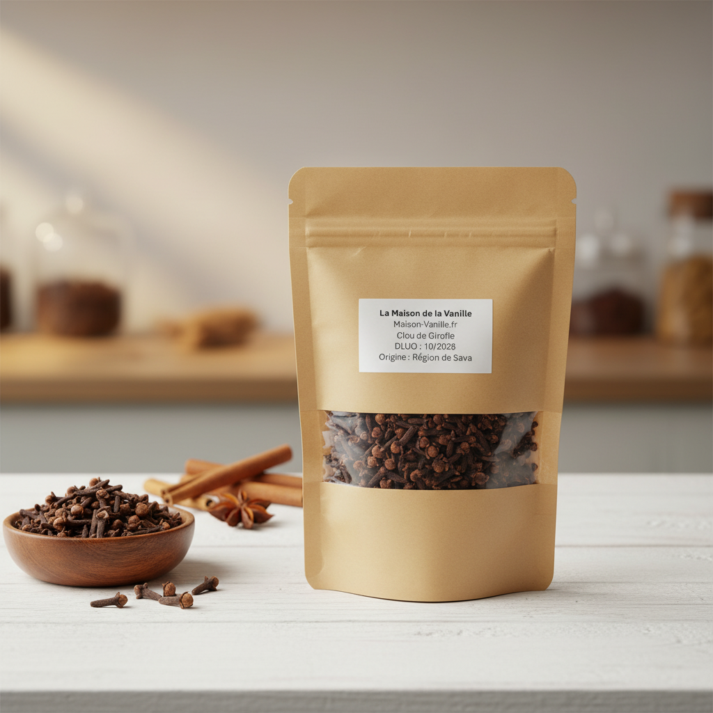📦 Conservation optimale Le clou de girofle est puissant mais volatil. Notre sachet Kraft alimentaire refermable de 50g constitue une barrière parfaite contre l’air, préservant ainsi l’intensité et les propriétés du clou sur le long terme.